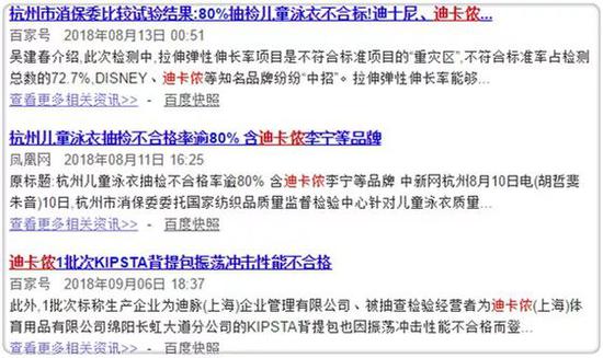 8月份,在对儿童泳装的抽检中,杭州市消保委称迪卡侬的针织泳衣拉伸强度不符合标准;