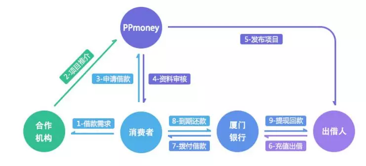 不过,PPmoney并未对外披露其合作机构。PPmoney网贷官网介绍的模式显示,消费者在合作机构处有贷款需求,而合作机构会向PPmoney推介相关项目。