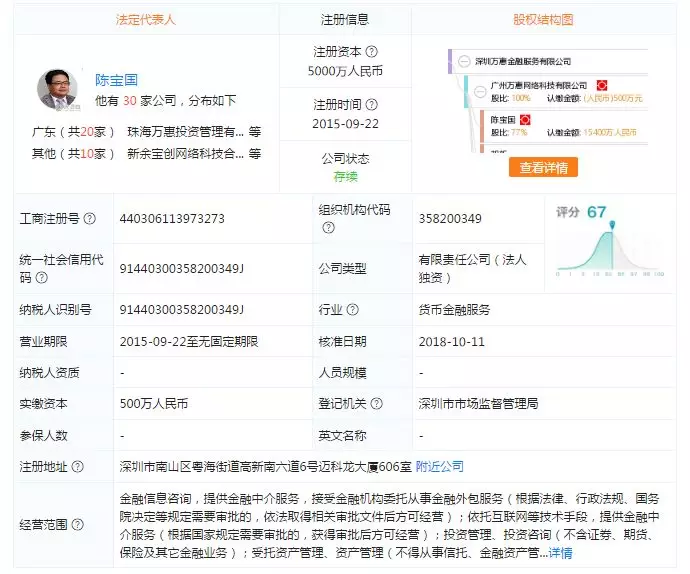 而广东万惠网络科技集团有限公司(下称“PPmoney万惠集团”)则为万惠金科股东。据了解,PPmoney万惠集团法定代表人为陈宝国,注册资本为2亿。