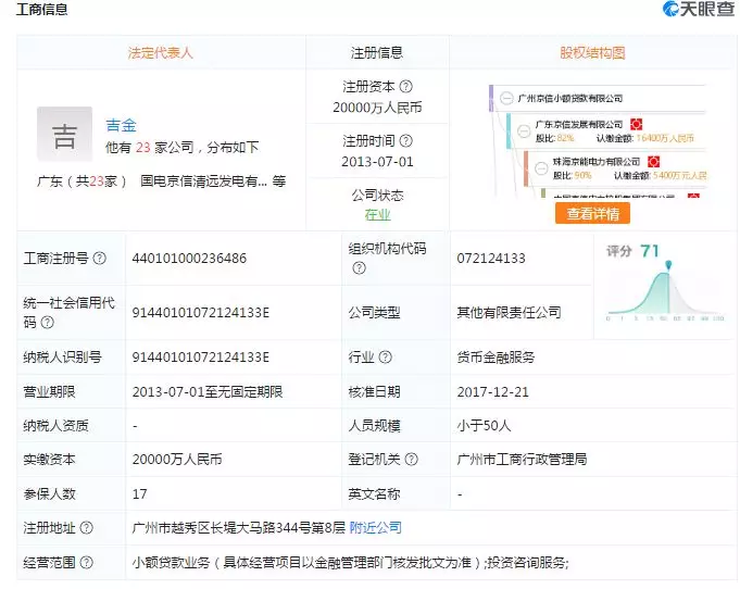 另天眼查显示,京信小贷经营范围中,未提到“通过网络平台提供线上小额贷款业务”,因此及贷等曾被业内认为涉嫌违规开展放款业务。