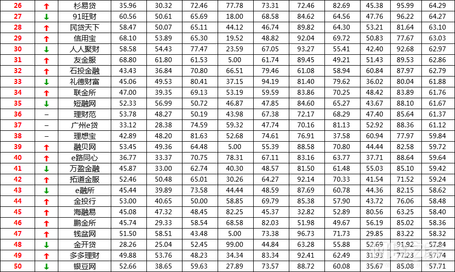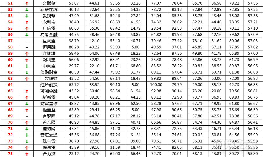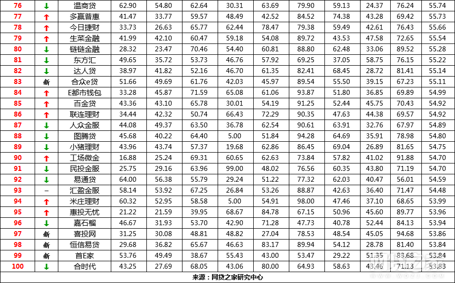 本期,新增上榜平台有合众e贷、喜投网、恒信易贷、首E家;元宝365、一点通财富、钱香、邦帮堂等在本期未进入前100,故未展示。