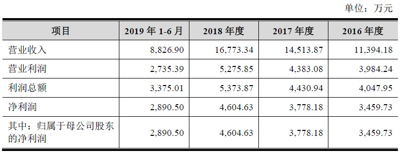 财务数据显示,2016年至2018年以及2019年上半年,公司营业收入分别为1.14亿元、1.45亿元、1.68亿元、8826.90万元;净利润分别为3459.73万元、3778.18万元、4604.63万元、2890.50万元。报告期内,海昌新材向其前五大客户的销售收入占当期营业收入比例分别为85.11%、88.86%、87.72%和84.05%。